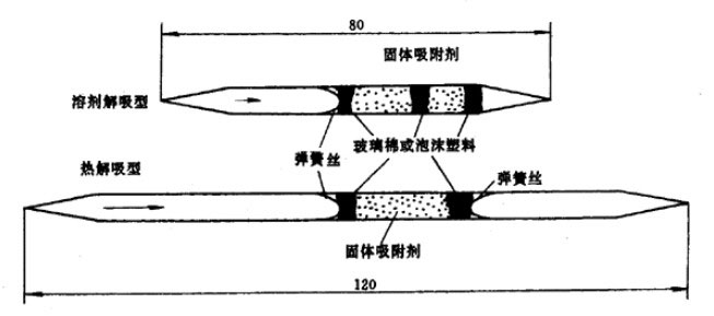 3.7.1.1溶剂解吸型活性炭管:管长80mm,内径3.5~4.0mm,外径5.5~6.0mm;前段装100mg活性炭,后段装50mg活性炭。
